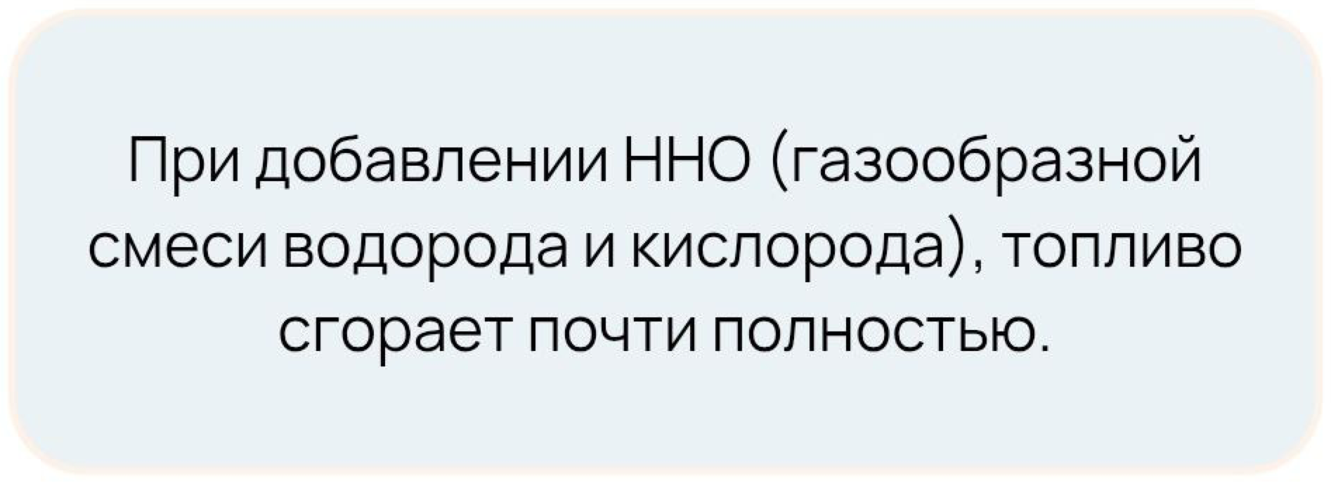 ННО действует как катализатор, ускоряя и улучшая процесс сгорания топливной смеси.